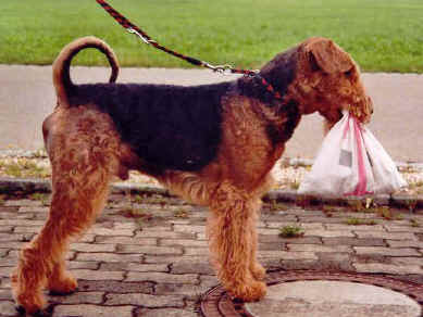 Bijou bringt gern seinen Proviantbeutel mit, wenn er uns besucht, und er legt Wert darauf, ihn selber zu tragen!