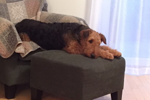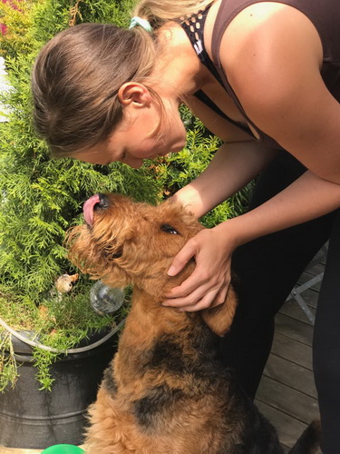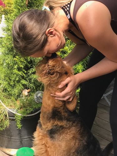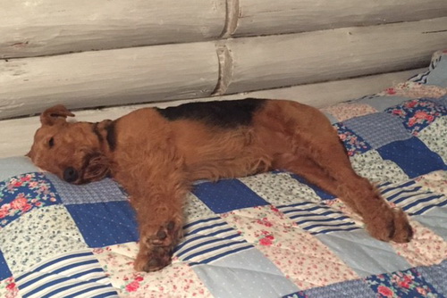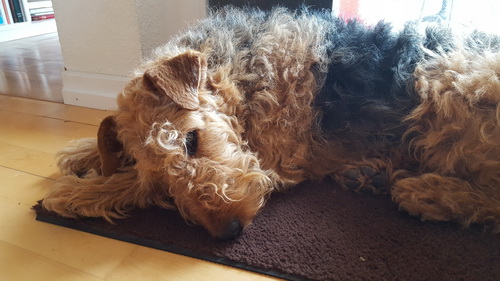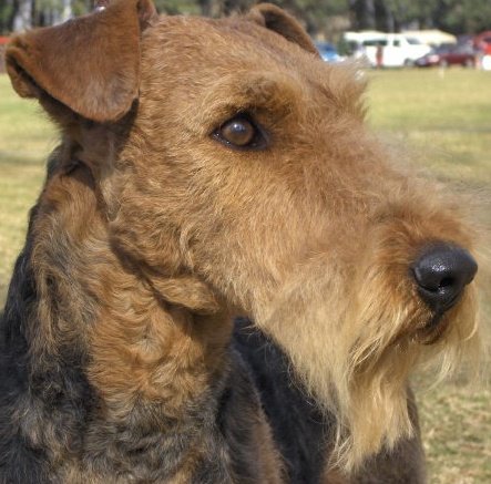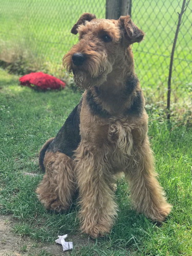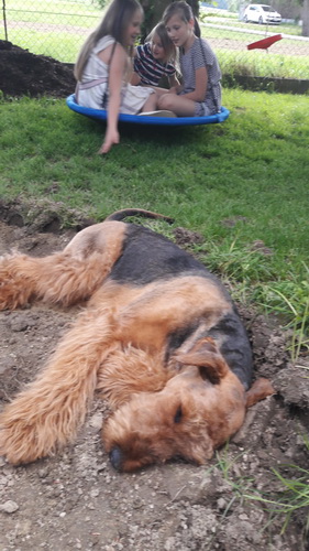 "Today I said goodbye to a very special Airedale Candy. Academy Award aus dem Guenztal. Bred by Gabrielle Paul , born 18 August 2003. Imported from Germany to South Africa by Bärbel Friedrich. Who kindly allowed her to come live with me. Co-owed by Gillian Maxted. Candy was the indulgent Dam of 18 puppies, tolerant Granddam & Great Granddam to pups in my home. She was very special to me , I will miss her dearly but will remember fondly as her decendants live in my home. Happy Hunting my Girl. She leaves in my yard Two daughters Danbecka Honeybee (Renata) & Danbecka Dancer (Matilda) 2 Grandkids : Danbecka Maximilian & Danbecka Cleopatra and The Great Grand brat Danbecka Solo Hun"