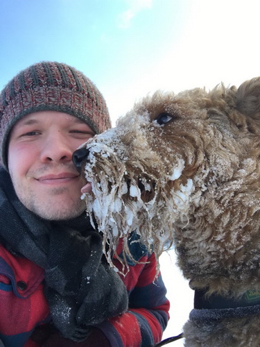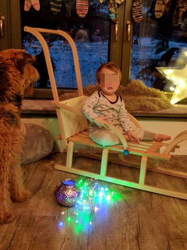 "Unser Lause(b)engel geniesst das Herumtollen im Schnee in vollen Zügen. Da nimmt man gerne in Kauf, dass nach getaner Schlacht alles ein wenig nach Überschwemmung aussieht. Eccolo ist das jedoch ziemlich wurst, Hauptsache zuhause wartet ein feines Etwas, welches er an seinem Lieblingsplatz ausgiebig und genüsslich zerlegen kann.