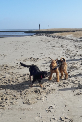 machte Urlaub an der Nordsee. "So viele Komplimente wegen unserem schönen, gelassenen und sanften Hund haben wir noch nie zuvor bekommen; die meisten kannten die Rasse zwar nicht, aber waren wie gesagt begeistert! Carlos lief auf dem Deich ohne Leine und war super abrufbar trotz Hunden und Spaziergängern, wir waren so stolz! Ich weiß natürlich nicht, was passiert wäre, wenn eine Katze um die Ecke gekommen wäre. Auf alle Fälle, super Urlaub, super Wetter und natürlich super Hund!!!"