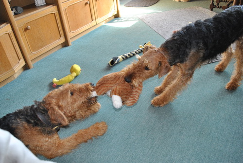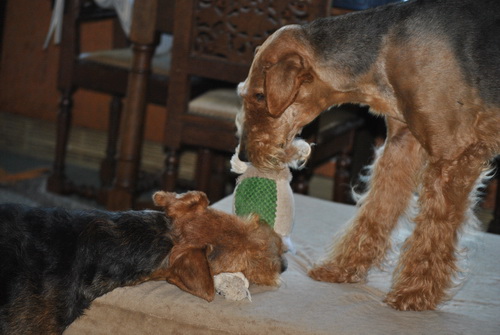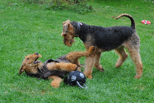 Eccolo! und seine Menschen wollten einmal 4 Airedales "auf einem Haufen" erleben und haben uns deshalb einen Besuch abgestattet.