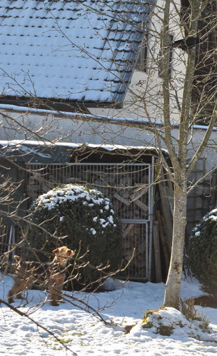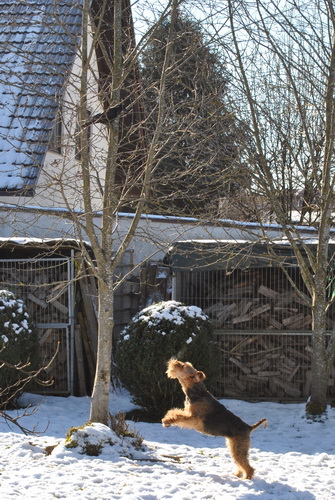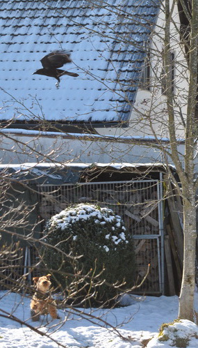 Unsere Rabenkrähe "Egon" ärgert Rakli - ein neuer gemeinsamer Frühsport