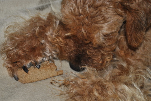 Calla hält dagegen elegant ihr Hundebrot