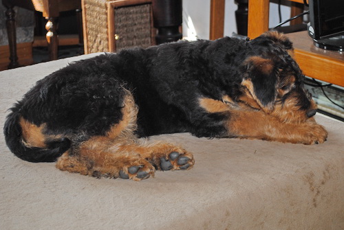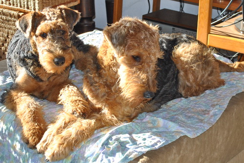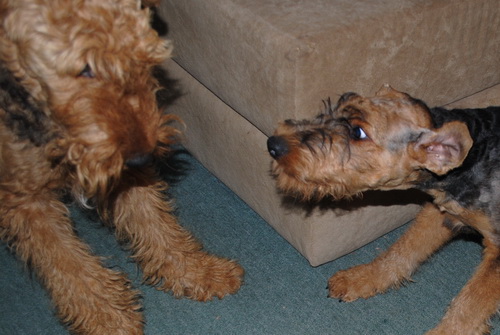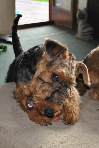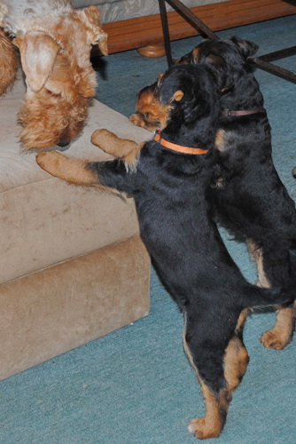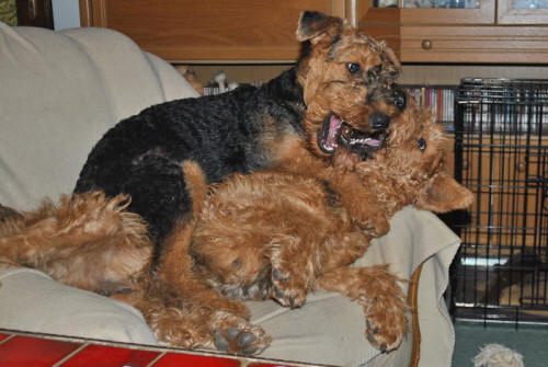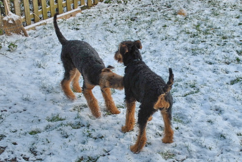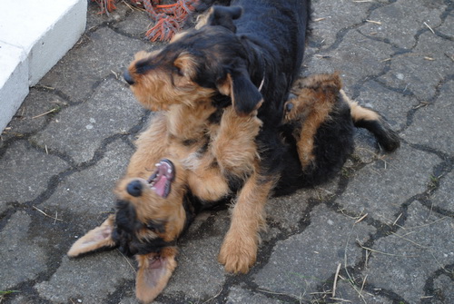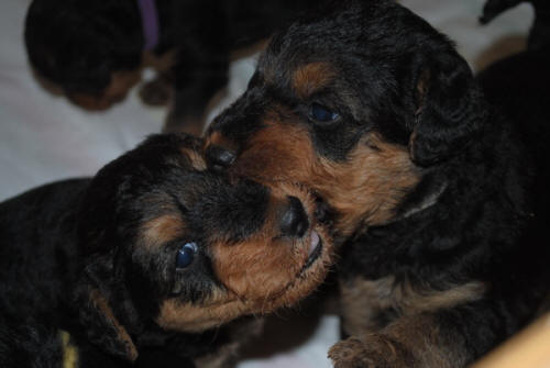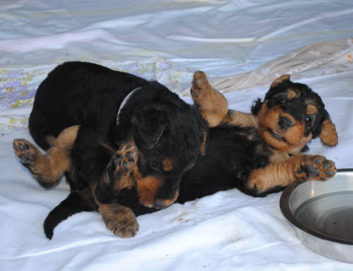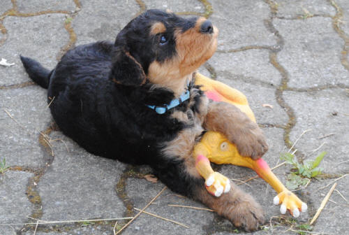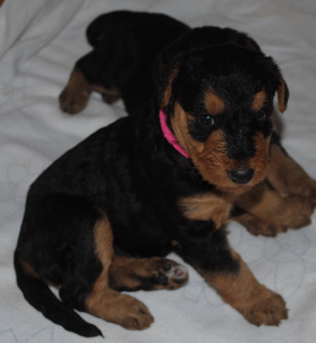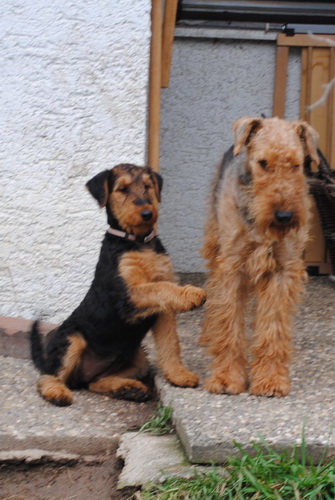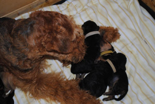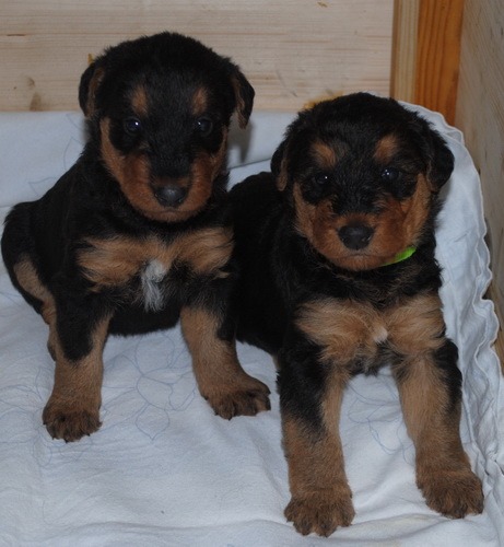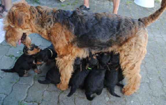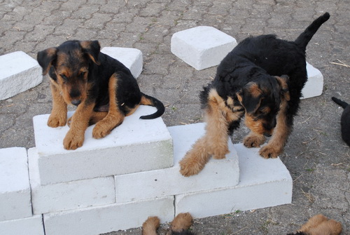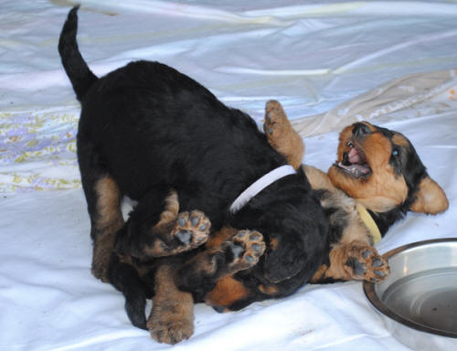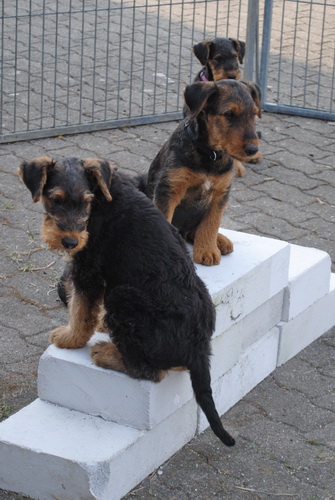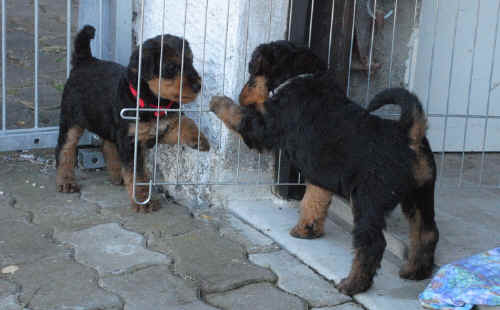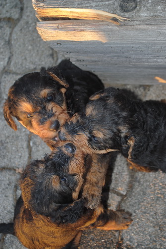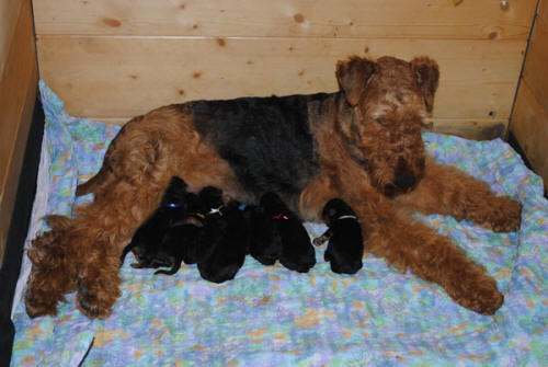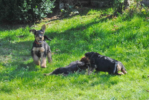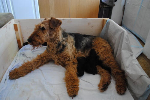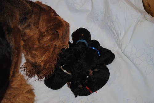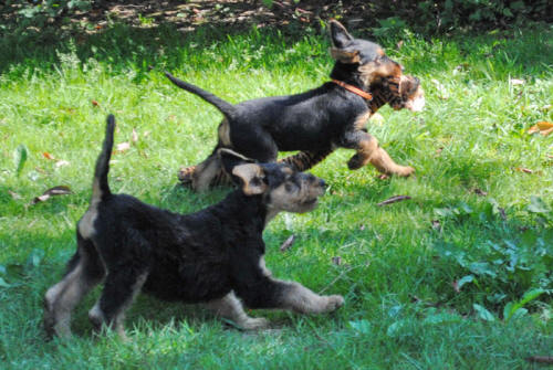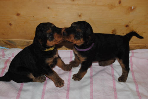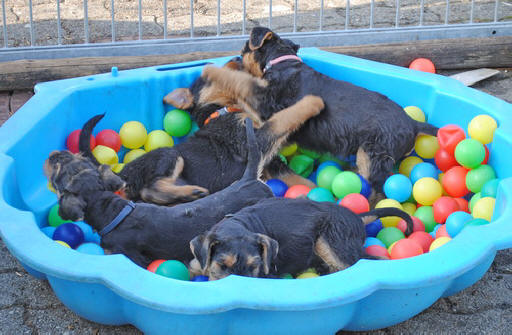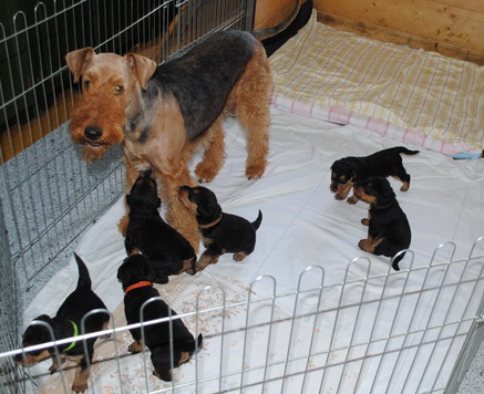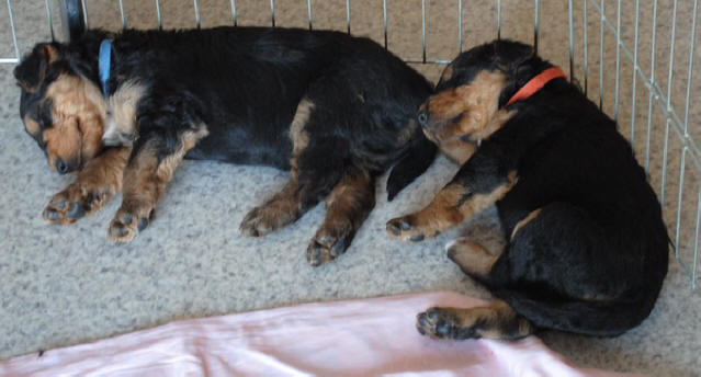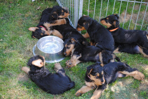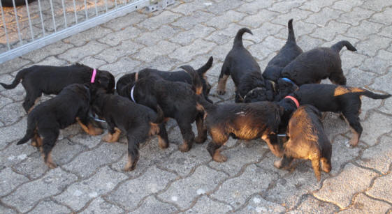 Calla = Call It A Day v.d. Locher Mühle hat Welpen (*26. 6. 2013, 2/3) nach Ch Matze vom Garnsee, Danny = Vamp At Dawn v.d. Locher Mühle hat Welpen (*1. 7. 2013, 2/4) nach Ch Glenroses The Spitfire