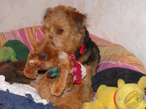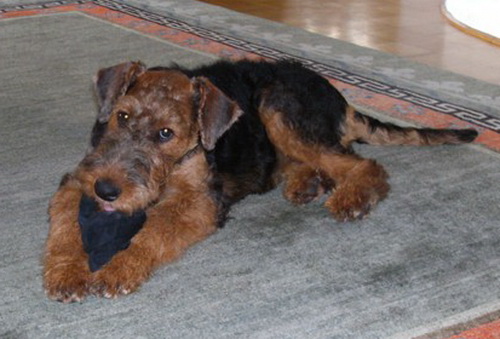unserer ersten Airedale-Hündin erkennen wir Charakterzüge an ihm, denn
