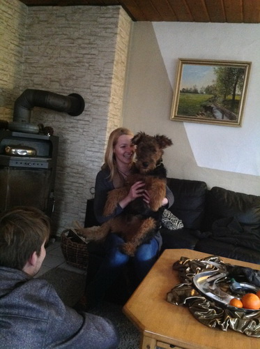 Doro, früher Taubi, "weinte" in der ersten Nacht im neuen Zuhause - das ist jetzt aber vorbei und es geht ihr gut. Die alteingesessenen Airedalin im Haus akzeptiert die Kleine, wenn sie sie nicht zu sehr nervt.
