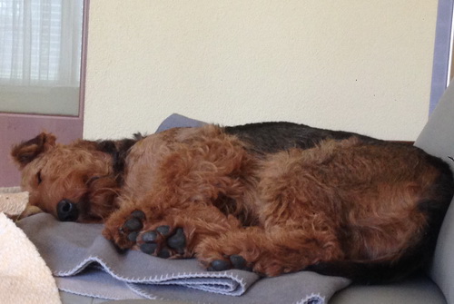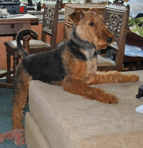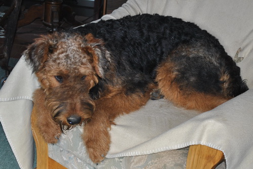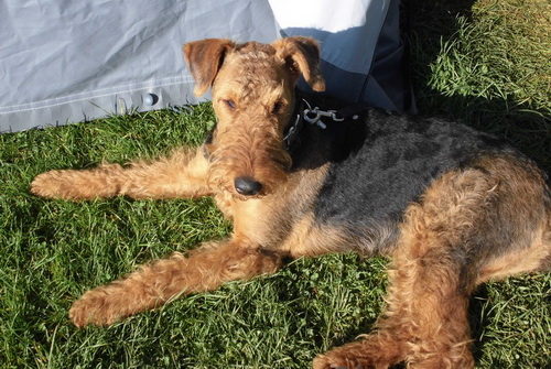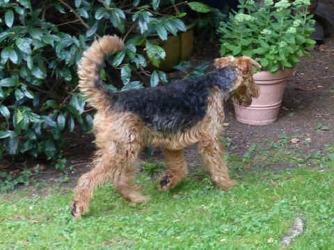 Betty schickt Grüße und zeigt, daß sie airedalemäßig rumlungern kann ...