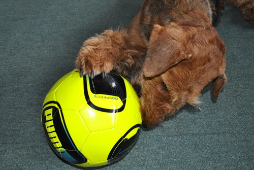 Ein Fußball ist ein etwas unhandlicher Kauartikel!