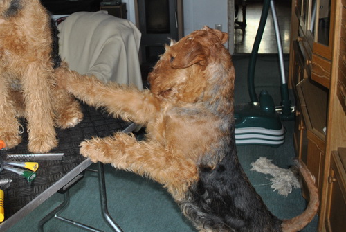 Calla ist beim Trimmen wieder eine große Hilfe