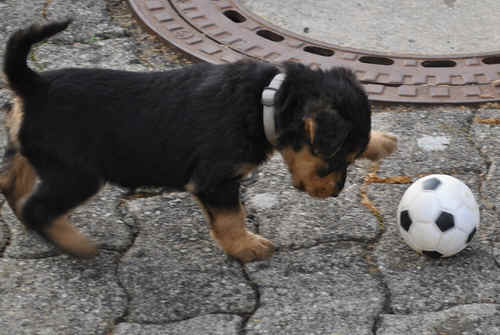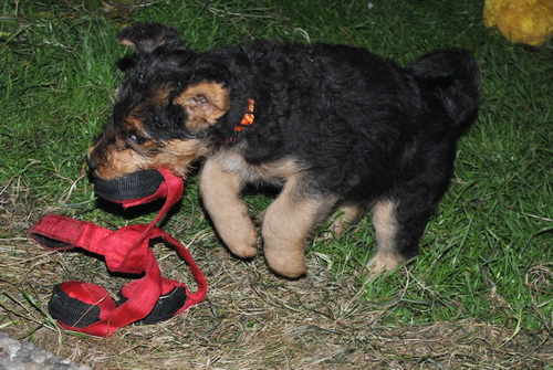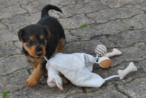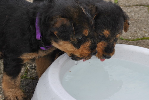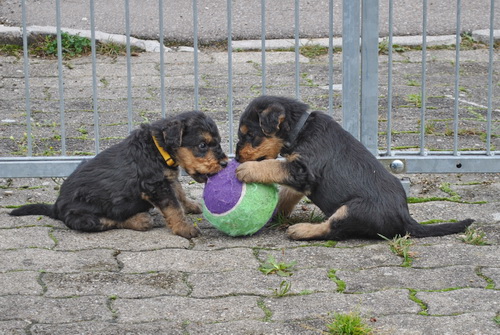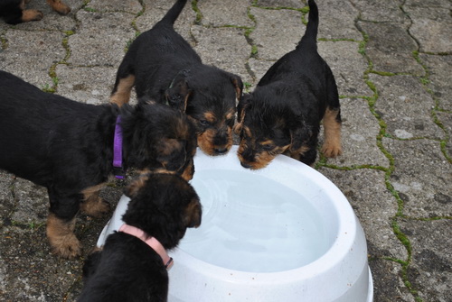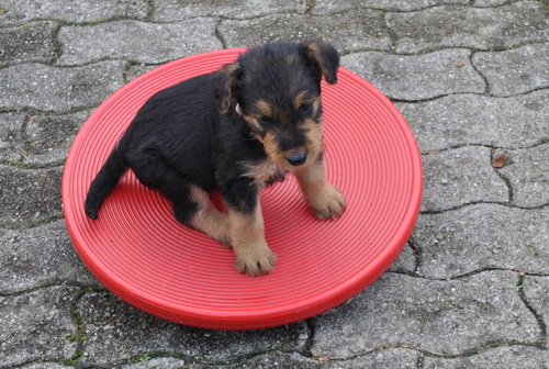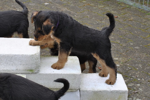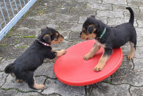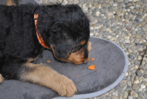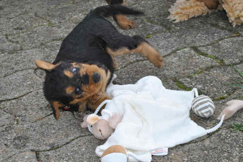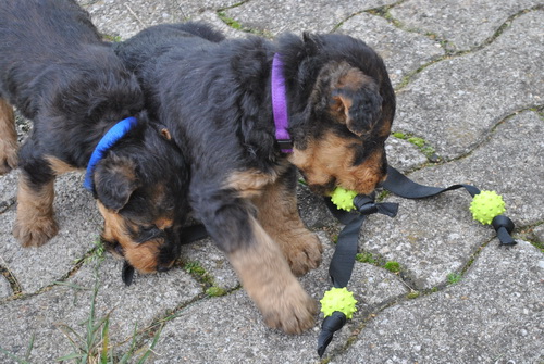 Rot bellt und Lila knurrt. Alle laufen oder beginnen zu laufen und fallen nicht mehr dauernd um. Einzelne können sitzen. Und vor allem: sie sind schnell, unheimlich schnell - z.B. wenn sie von der Waage runterwollen beim Fototermin.