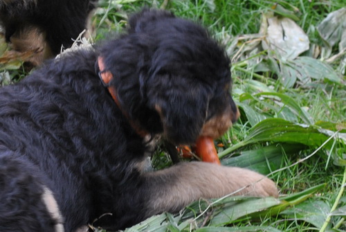 Heute war Möhrchen-Tag - als wir begriffen hatten, daß Möhrchen eßbar sind, fanden wir sie ziemlich lecker.