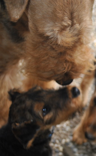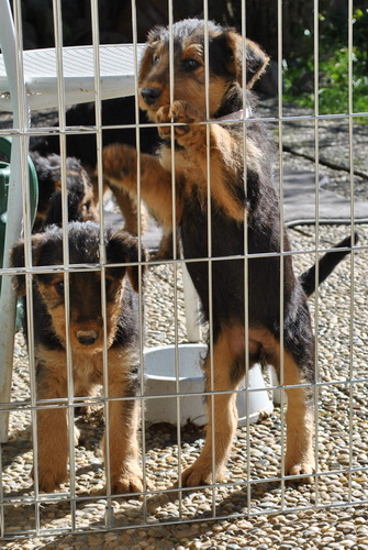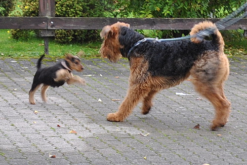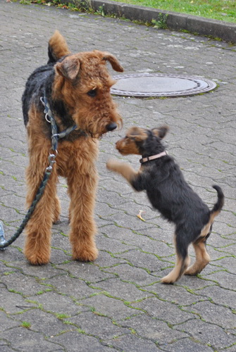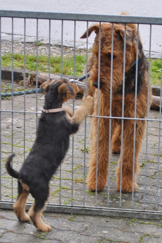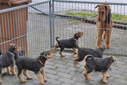 und wog die Vorteile eines Lebens als Alleinhund gegen die der Geschwistergruppe ab, und dann beschloß sie, "Welt, ich komme!!!