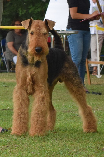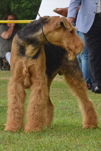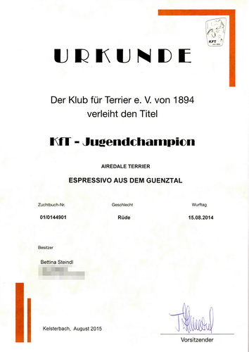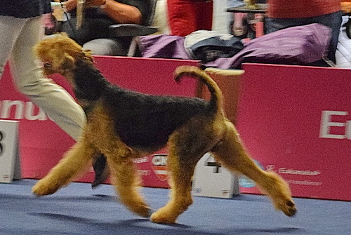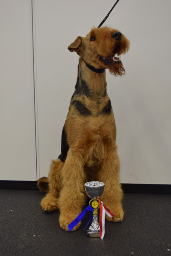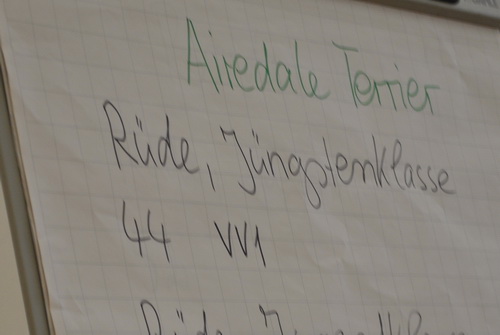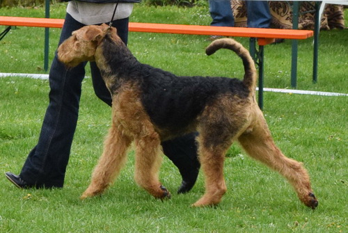Conan wurde auf der Ausstellung der OG Augsburg wieder in der Jugendklasse gezeigt. Er erhielt die Bewertung vorzüglich1 und die Titelanwartschaften - er wurde Bester Junghund bei den Airedales, Rassebester (BOB) und schließlich Bester Junghund der Schau! Im Rennen um den Best in Show (BIS) kam er in die Endrunde.