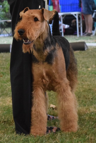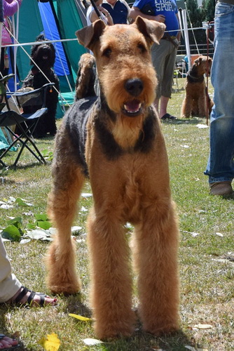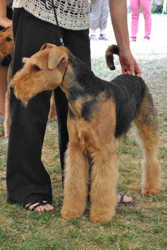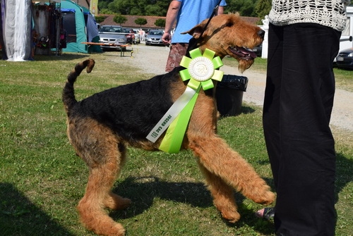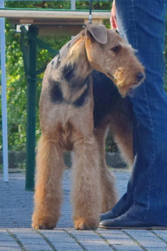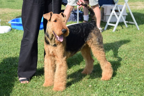 Conan war am bisher heißesten Wochenende wieder auf Ausstellung - bei der KfT OG Regensburger Land zur Schau "Dog im Park". Er wurde zum ersten Mal in der Jugendklasse gezeigt und hat seine Sache bestens gemacht; er erhielt die Bewertung "vorzüglich 1", alle Jugendanwartschaften und wurde Bester Junghund bei den Airedales. Dann hat es ihm (und seinem Frauchen) aber gereicht ...
