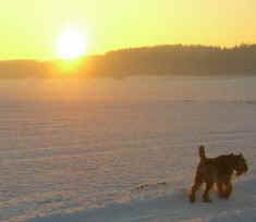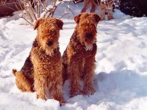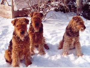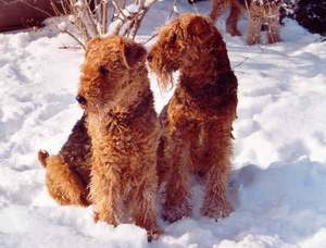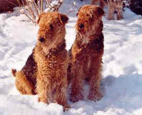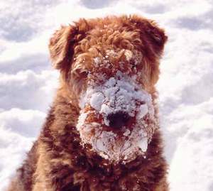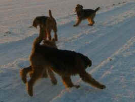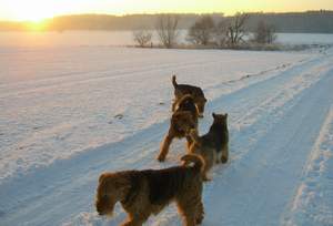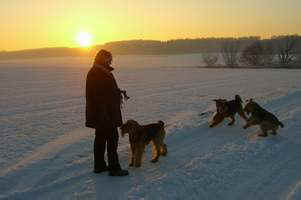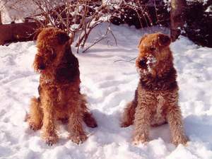 Airedales sind nicht kälteempfindlich - im Gegenteil, sie leiden eher unter 30°+ als unter 15°- ! Selbst die älteren Hunde rennen und toben in der Kälte und werden wieder jugendlich-albern.